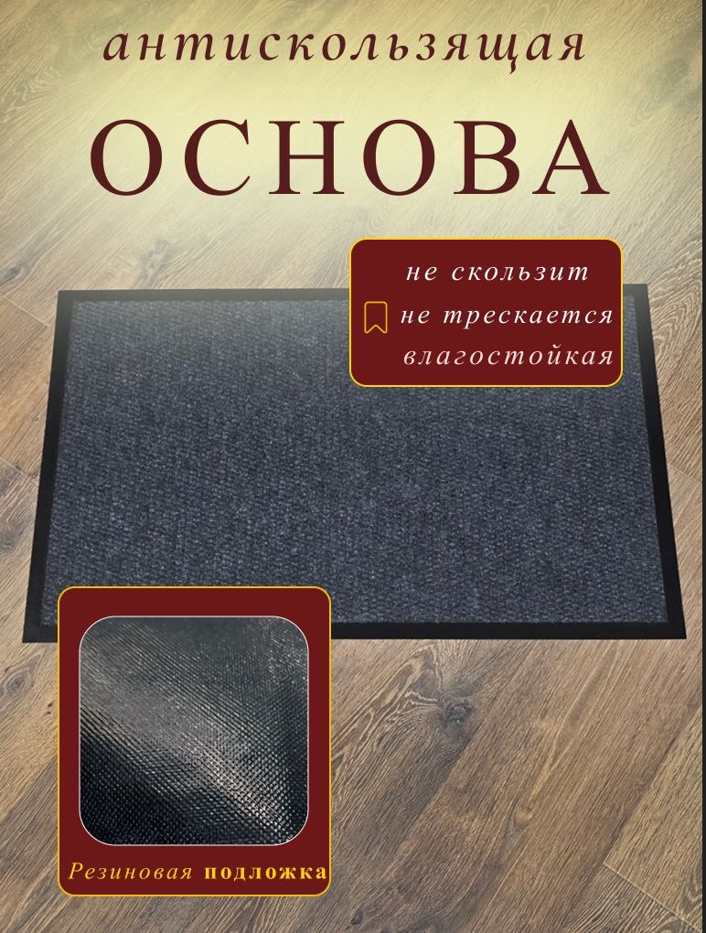 ✧ Главная » Придверные коврики » Коврик придверный TexiGum Цикада 80х120 см Темно-серый входной в прихожую грязезащитный